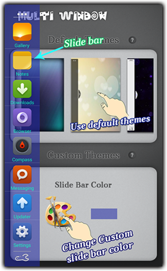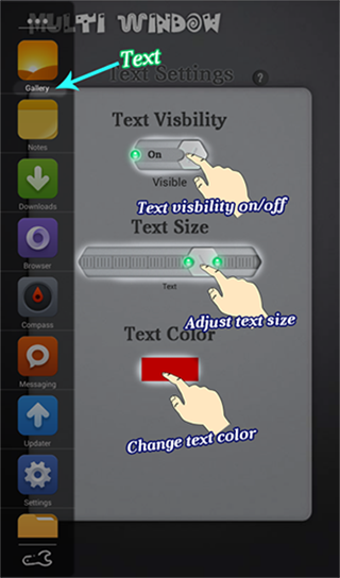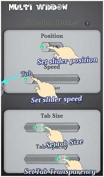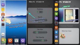 ผู้ใช้สามารถปรับแต่งแง่มุมต่างๆ ของแอป เช่น สี ขนาด และความสามารถในการมองเห็นของข้อความรวมถึงขนาดและความโปร่งใสของปุ่มแท็บ Multi Window จะเริ่มทำงานโดยอัตโนมัติเมื่อเริ่มต้นอุปกรณ์ใหม่และได้รับการปรับให้ใช้ RAM น้อยที่สุดเพื่อให้มีประสิทธิภาพที่มีประสิทธิภาพ อย่างไรก็ตามอุปกรณ์บางรุ่นอาจไม่แสดงแถบเลื่อนเนื่องจากข้อจำกัดด้านฮาร์ดแวร์ โดยรวมแล้ว Multi Window นำเสนอวิธีแก้ปัญหาที่ใช้งานได้จริงสำหรับผู้ที่ต้องการเพิ่มประสบการณ์การทำงานหลายอย่างพร้อมกันบนอุปกรณ์ Android